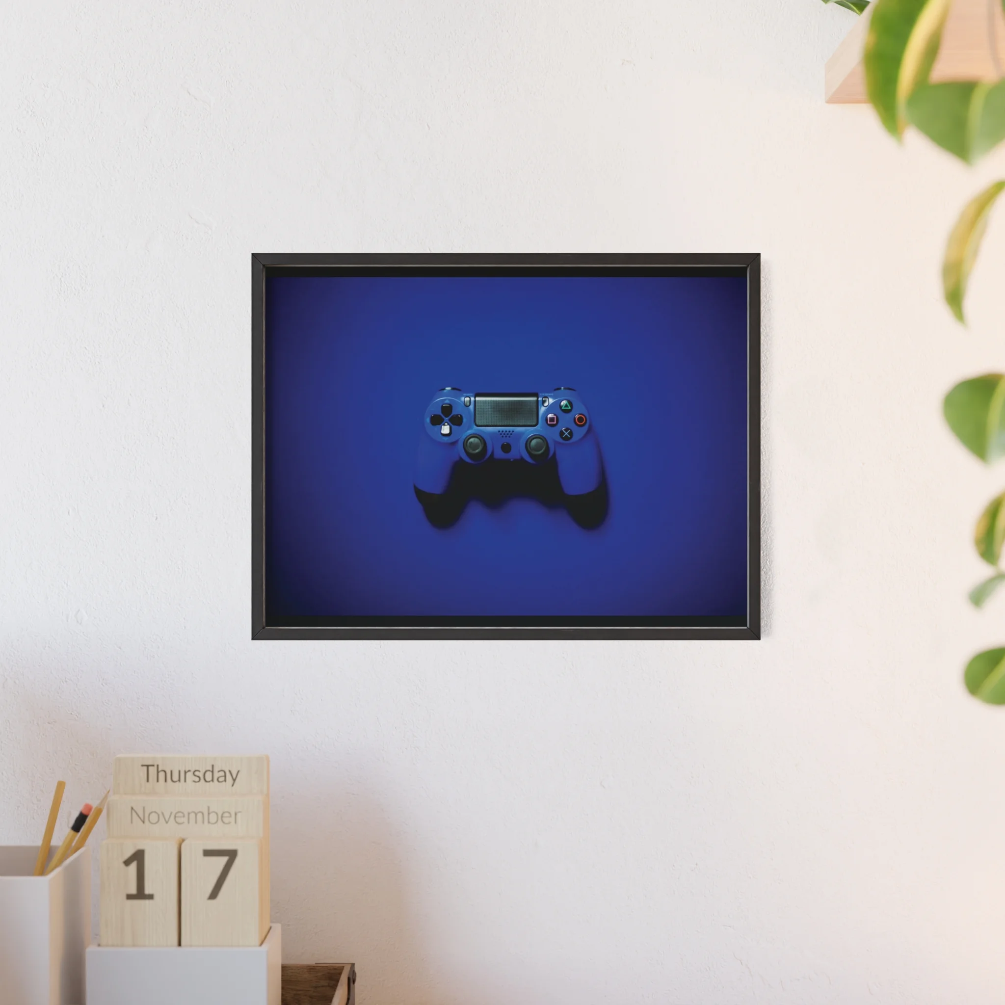 Be the first to review “Neon Blue Controller Poster with Wooden Frame”